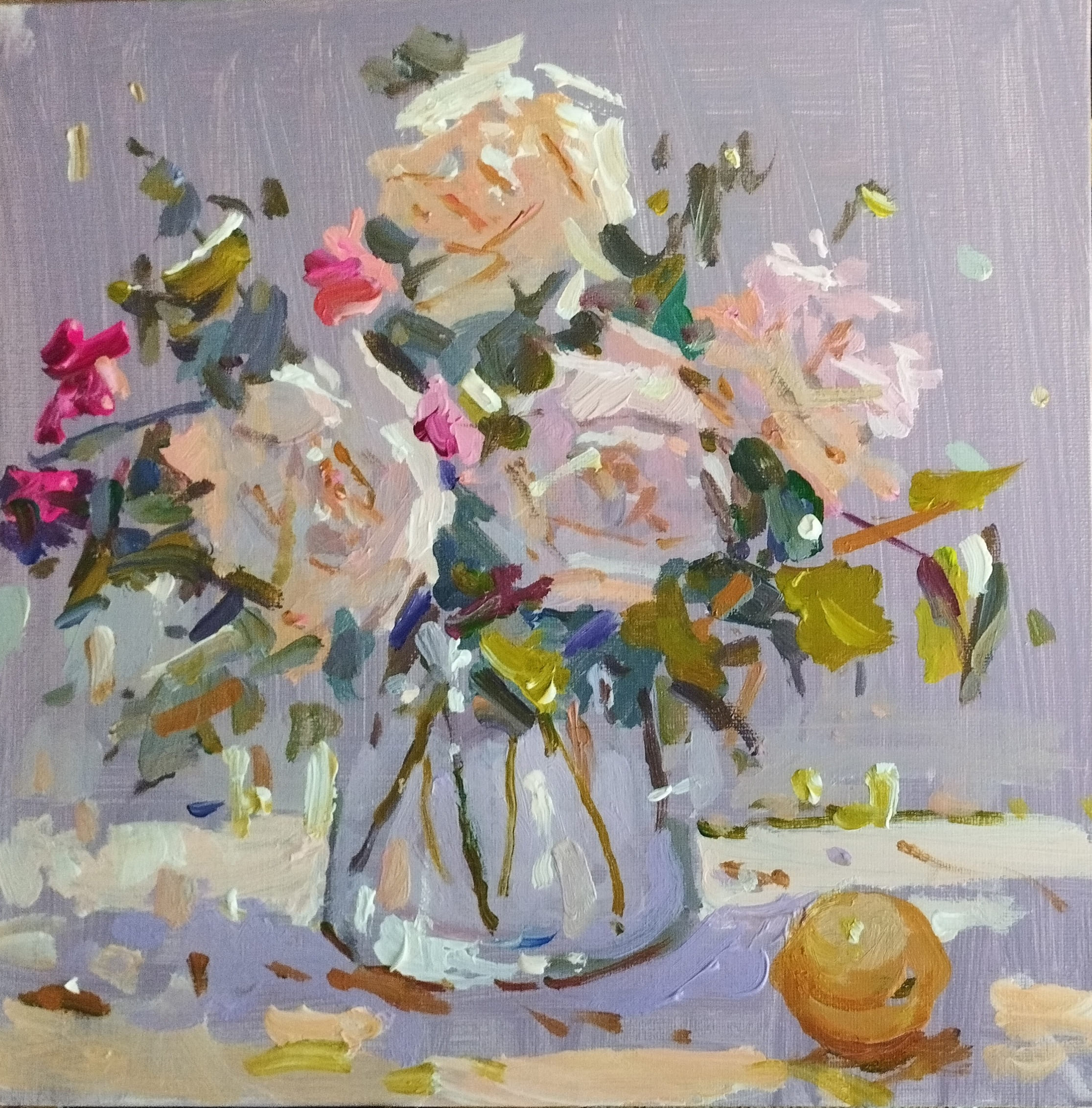 «Солнечное утро» — камерный этюд натюрморта Анатолия Костяникова, построенный на тонких вибрациях света и мягкого сфумато. Колористическая структура создаёт ощущение ранней тишины, когда предметы едва проступают сквозь световое мерцание. Цветы в стеклянной вазе и лежащий рядом фрукт становятся метафорами пробуждения, чистоты и новой жизненной энергии. Костяников использует свободную живописную пластику, близкую к французскому постимпрессионизму, но сохраняет характерную для него лирическую интонацию и утонченную вибрацию цвета. Этюд мастера находится в стремлении к почти музыкальному живописному звучанию его палитры. «Солнечное утро» продолжает серию камерных натюрмортов, в которых Костяников исследует природу света как пульсацию живописной материи.