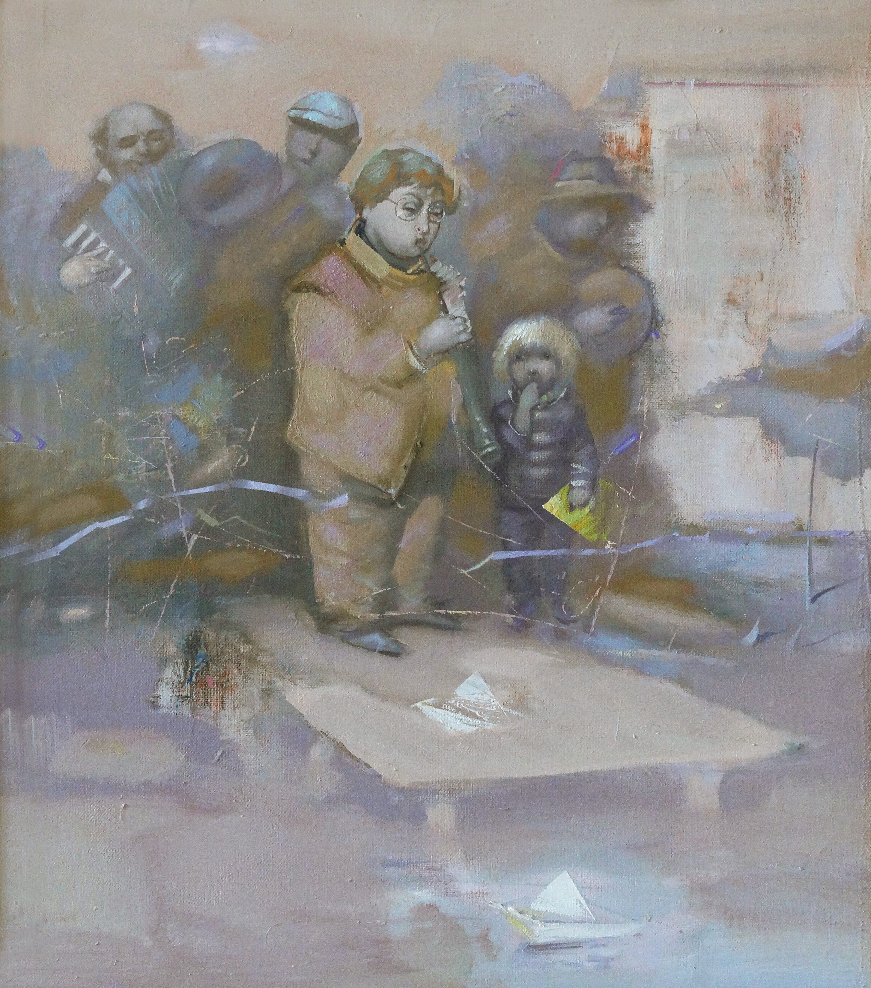 Структурно мастеру удаётся объединить фигуративность и ассоциацию, материю и атмосферу. Костяников обращается к мотиву игры как источнику внутреннего света и надежды. Плавные пастельные тона, размытые штрихи и символика кораблика соединяют реальность и фантазию, превращая сцену в маленький театр жизни, наполненный мягкой меланхолией и поэтическим дыханием воспоминаний и тихой ностальгии.