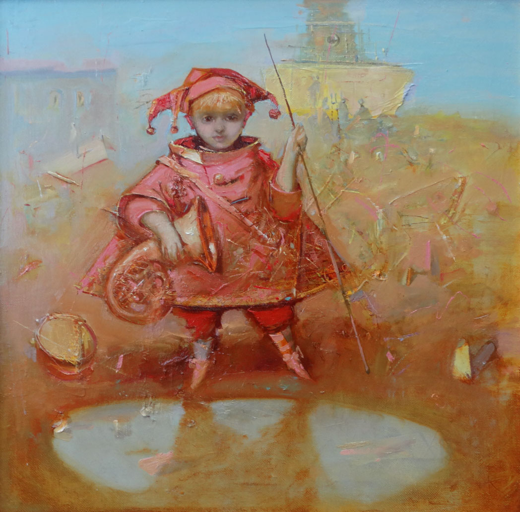 Произведение относится к зрелому периоду творчества Анатолия Гавриловича Костяникова и продолжает его устойчивый интерес к архетипическим фигурам памяти — ребёнку, пилигриму, фавориту, музыканту. Композиция выстроена фронтально: фигура ребёнка занимает центр холста, однако не подавляет пространство, а мягко вливается в него, становясь неотъемлемой его частью.